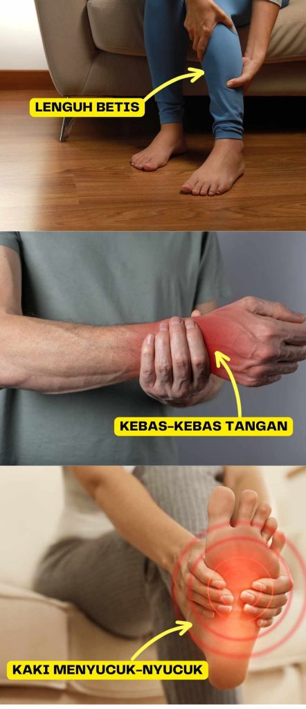 Rasa tangan menyucuk-nyucuk atau rasa sesemut. Nak pegang sesuatu pun tak ada rasa.